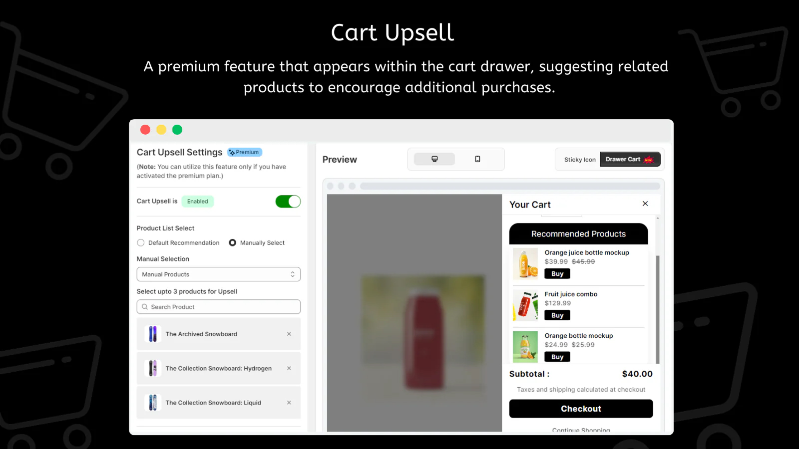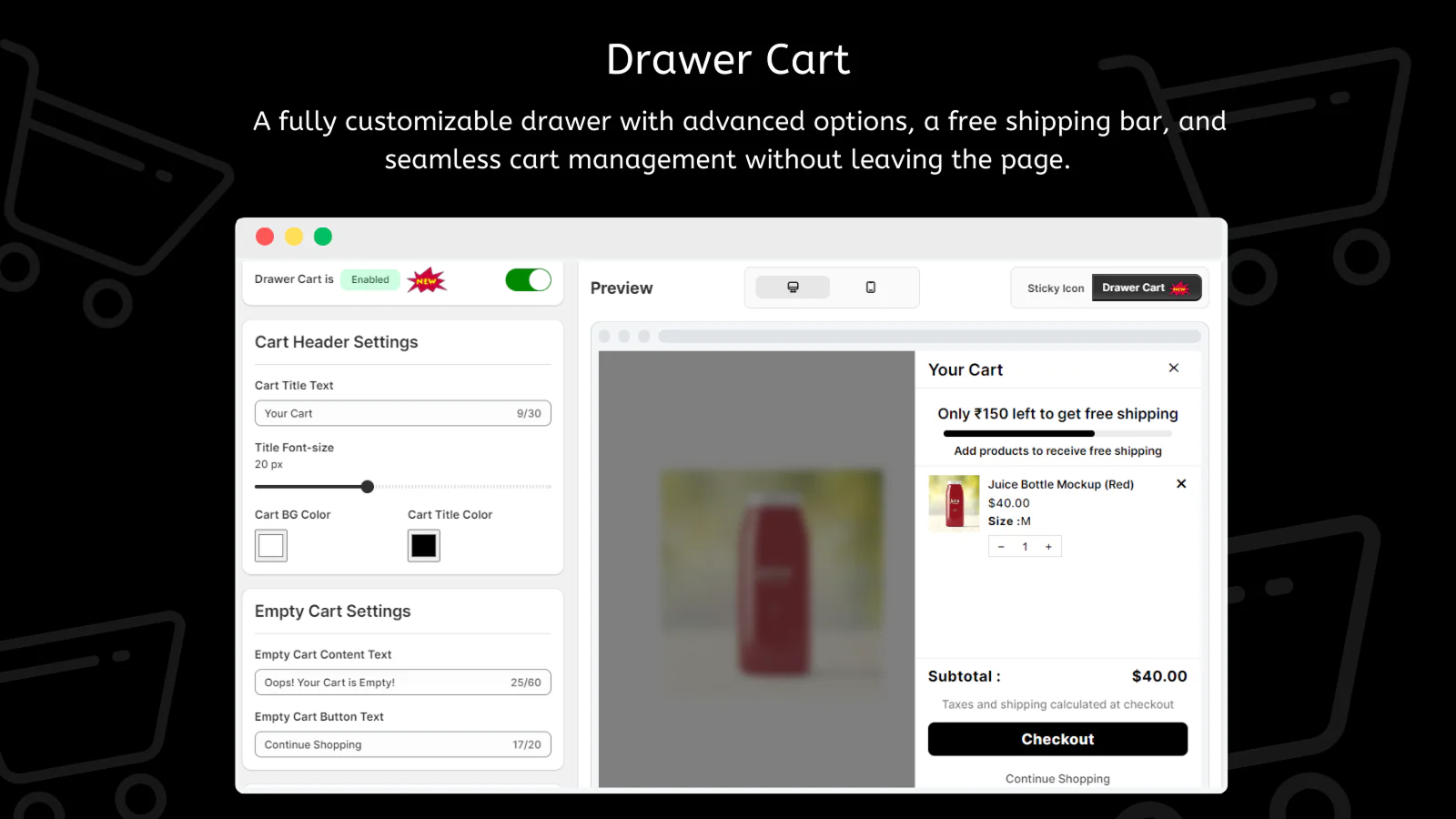 LM Sticky Cart Drawer & Upsell delivers a seamless shopping experience with an immersive cart drawer, sticky bar, and smart upsell features. Built using React and Laravel, it helps Shopify stores increase engagement, simplify cart actions, and boost conversions effortlessly.