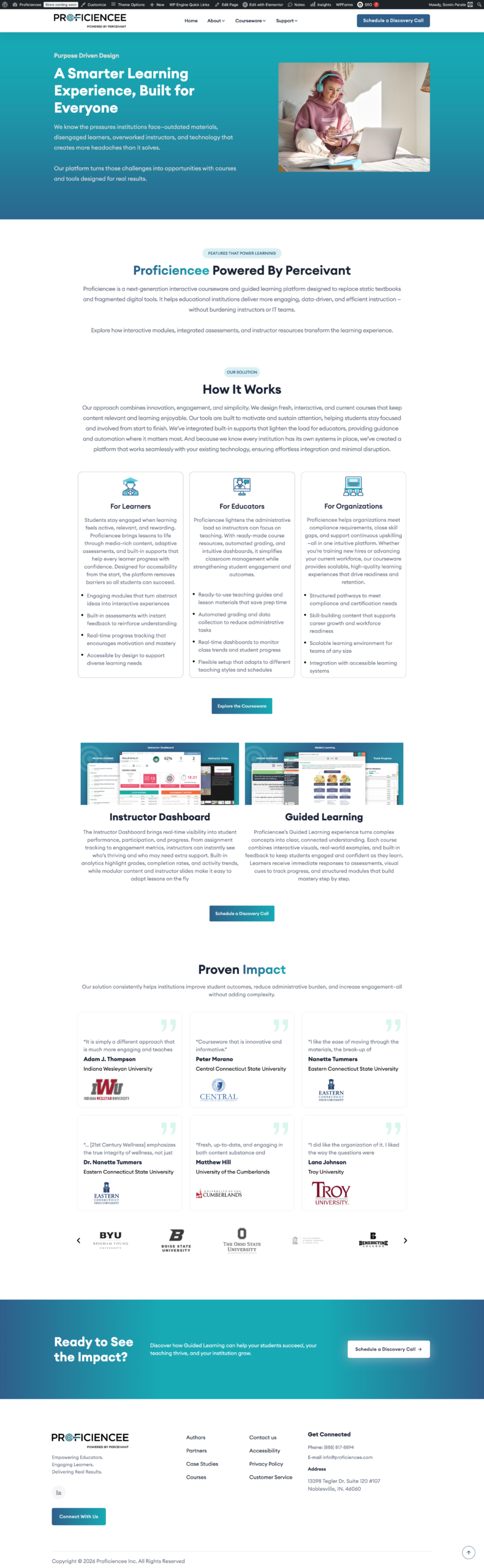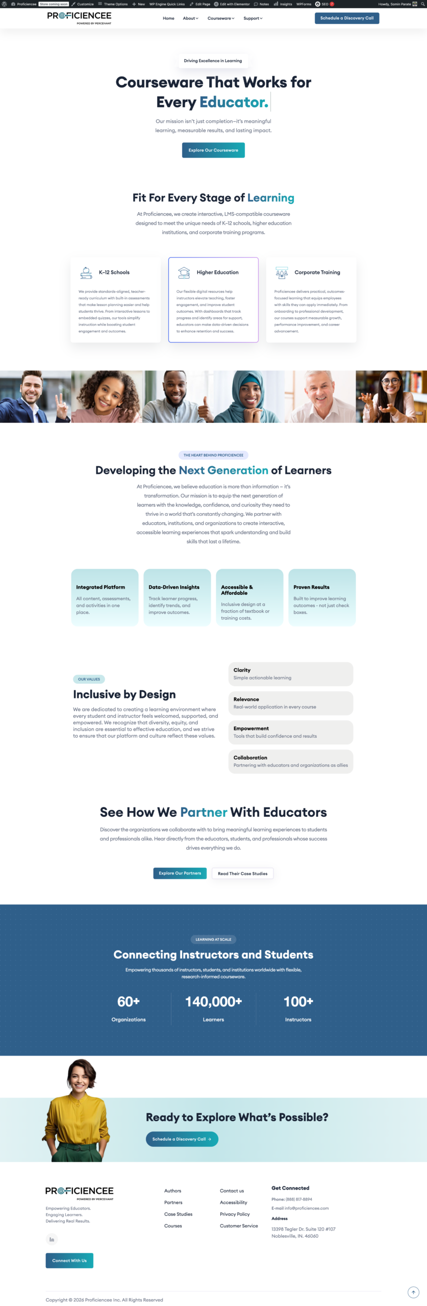 Proficiencee is a digital learning platform designed to support educators, learners, and institutions. This project focused on creating a clear, accessible, and content-driven website with a strong emphasis on usability and structured information.